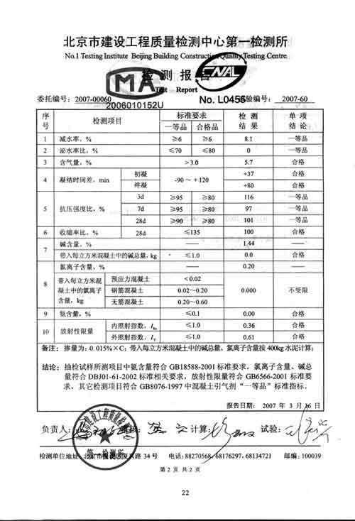 微添劑分 1 型、 2 型和 3 型三種產品, 1 型為棕褐色膏狀,摻量為水泥量的 0. 5 ~ 1/ 萬,需用熱水( 80 ℃ )稀釋后使用, 2 型為粉劑,摻量為水泥量的 0.1% ,可直接加入拌合物中, 3 型為防凍型粉劑,可使砂漿在 -5 ℃ ~ 15 ℃ 溫度下,仍具有一定的強度增長,防止凍害。溫度為 -5 ℃ 時,摻量 4 ~ 5% , -10 ℃ 時,摻量 5 ~ 7% , -15 ℃ 時,摻量 8 ~ 10% 。