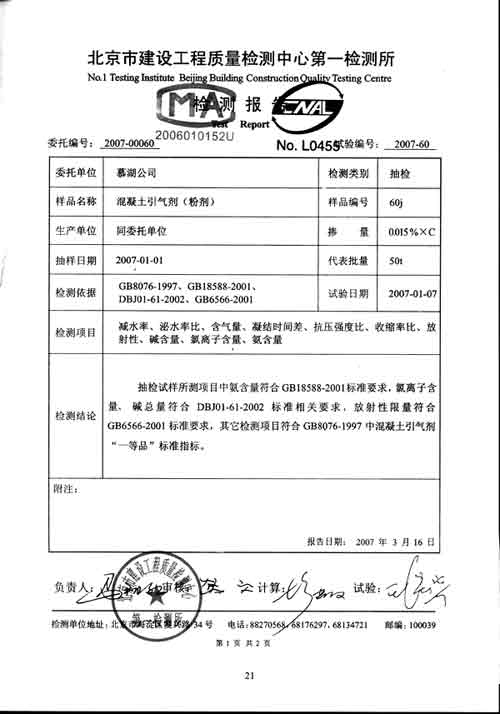 AE 1 micro-foaming agent is a type of plasticising agent for organic or organic-inorganic mortar, which agent is especially good for improving the workability of mortar raising its compressive strength , saving cement and lime paste . In the mixed mortar, the micro-foaming agent can partially or totally substitute for the time paste ; in the mortar for decorative purpose , it can replace 3 0 ~ 50% of lime paste ; in masonry work . microfoaming agent can supplant 100 % lime paste . The strength of high grade mortar(M7.5 ~ M10)can by raised by20 ~ 30 % , and the strength of low grade mortar(M2.5 ~ M5) by 30 ~ 50 % .