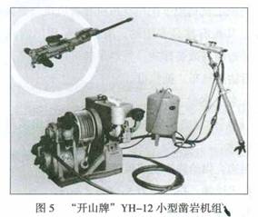 此方法的優點是開溝快,缺點是易傷石質。因此,必須多打孔,每孔放入黑火藥量要小,孔距 3 0 ~ 40mm ,每孔裝黑火藥量 5 0 ~ 100g ,用黃泥封孔,達松動爆破即可,再用人工或風鎬清渣,切不可用硝銨炸藥。