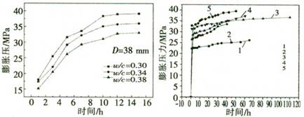 圖 1 水灰比與膨脹壓力關系 圖 2 藥量與膨脹壓力的關系