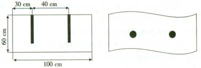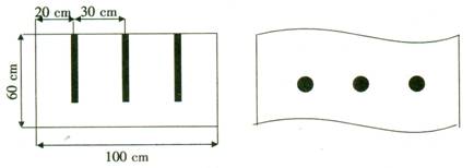 3 混凝土開裂實驗 試驗 1: 混凝土試塊 10 0 ㎝× 7 0 ㎝× 60cm ,鉆孔直徑為 30 mm ,孔深為 50 ㎝ ,鉆孔數量為 3 個,然后把靜態破碎劑裝入孔中。 2 h 出現裂縫,具體布置如圖 5 所示。