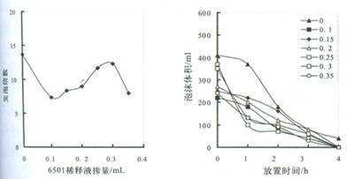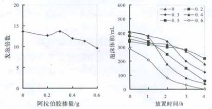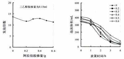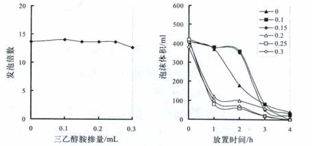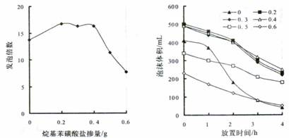 由表 1 數(shù)據(jù)可以看出:兩種發(fā)泡工藝是明顯有區(qū)別的,同樣的發(fā)泡劑,采用壓縮空氣發(fā)泡,其發(fā)泡倍數(shù)稍小一些,但其穩(wěn)泡性能明顯比高速攪拌發(fā)泡好。
