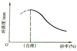 圖 2 砂率與坍落度的關系 圖 3 砂率與水泥用量的關系