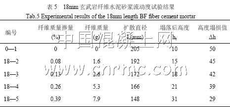 關鍵詞:纖維參數(shù);玄武巖纖維水泥砂漿;流動性;纖維間距理論