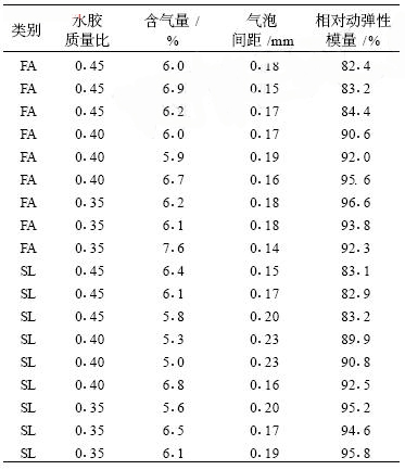 mm時,混凝土具有優(yōu)良的抗凍融耐久性。試驗結(jié)果顯示,無論是處于塑性狀態(tài)還是硬化狀態(tài),當(dāng)混