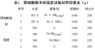 1.摻膨脹劑DE0-500的水泥膠砂的試驗(yàn)