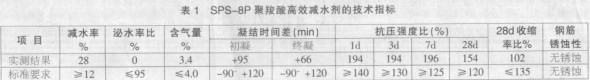 表1列出了該高效減水劑的實(shí)測(cè)技術(shù)指標(biāo)。