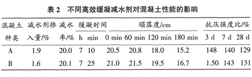 利用上述幾種材料,根據水泥中彬(R2O)和訓(C3A)值大小,參考水泥粉磨時石膏摻量,按照混凝土要求的減水率及緩凝時間選取合適的配比。