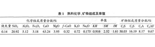 水泥標號42.5級,其中,熟料占87%,混合材占10%,石膏占3%,熟料化學成分見表1。