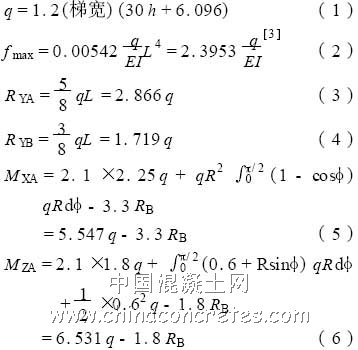 (1) 根據以往對鋼筋混凝土樓梯的承載力計算,踏步板荷載均勻分布在整個梯段內。