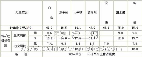 2、日本:模板費用占施工中的費用為:拱壩47%,重力壩30%。