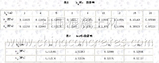 分析計算表6結(jié)果知,瀝青混凝土厚度(ha)由2cm增加到8cm的過程中,法向拉應(yīng)力σ上最大變化了3.94%;法向拉應(yīng)力σ下最大變化了1.59%,影響微小。瀝青混凝土厚度由8cm增加到20cm時,σ上減小了35.01%,σ下減小了39.84%。由于瀝青混凝土面層厚度一般不大于10cm,故可以不考慮瀝青面層厚度變化對層間拉應(yīng)力的影響。由表7知,橋面水泥混凝土調(diào)平層厚度(hc)在10cm至90cm之間變化時,法向拉應(yīng)力σ上最大變化了0.02%;法向拉應(yīng)力σ下最大變化了0.46%,因此,不考慮調(diào)平層厚度變化對層間拉應(yīng)力的影響。