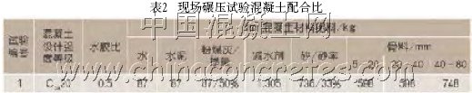 試驗場地選擇: 根據黃花寨水電站地理位置、氣候條件和骨料巖性,經各方研究選擇與其條件相似的落腳河水電站工地進行試驗,其優點是有較好的試驗場地,完整的砂石和混凝土拌合系統,施工隊伍是將承擔黃花寨水電站的中標單位,又有新購進的德國寶馬BW202AD振動壓路機。缺點是混凝土拌合樓能力較低,可能對碾壓試驗產生不良影響。