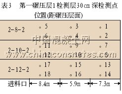 第一碾壓層1檢測層30cm深檢測點位置(距碾壓層面)(表3)。