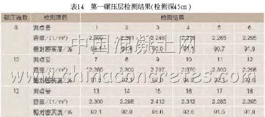 第一碾壓層檢測結果(檢測深45cm)(表14)。