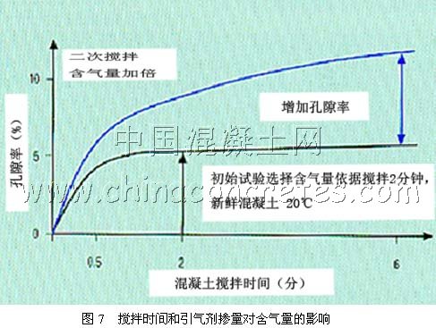 總體來說,我國建筑業(yè)尚未擺脫“粗放型”的操作方式。但由于科技進步,現(xiàn)在的情況比過去復雜得多。水泥品種眾多,混合材也多種多樣,摻量也很不相同,外加劑廣泛應用,魚目混雜,質(zhì)量相差甚遠,砂石材料的供應也不規(guī)范。因此要從“粗放”走向“精細”,材料的優(yōu)選優(yōu)配就顯得十分重要。但是僅憑實驗室確定的配合比和預期性能,并不能代表現(xiàn)場構(gòu)筑物的真實情況。國外資料表明,建筑的破壞因素,施工不良占有27%,估計就我國情況而言,這個比例還要大得多。因此鑒定和測試必需包括對施工質(zhì)量的監(jiān)測。對機場道面、道路、橋梁現(xiàn)場取樣鑒定就十分必要。這包括真實混凝土的水灰比、水泥摻量、配合比以及成熟度、均勻度等的測定,特別還有現(xiàn)場混凝土的含氣量。國內(nèi)外的資料一致證明摻引氣劑是提高混凝土抗凍性和抗除冰鹽腐蝕的最有效的措施,但現(xiàn)場混凝土的含氣量不僅決定于引氣劑性能、摻量以及混凝土的配合比,而且與攪拌方式、時間、運輸過程以及現(xiàn)場的施工方法和再攪拌等因素密切相關(guān)。德國【5料表明攪拌方式不同含氣量可以相差一倍(圖7),而含氣量的對少對混凝土的力學性能有顯著影響,同時引氣劑的效果不僅與含氣量大小有關(guān),還與引氣劑產(chǎn)生的微氣泡尺寸及尺寸分布和微氣泡的間距有關(guān),不仔細鑒定是無法得知這些信息的。因此我們應該把對原材料、配合比的監(jiān)控延伸到施工后真實混凝土的監(jiān)控,這將顯著提高構(gòu)筑物的質(zhì)量。