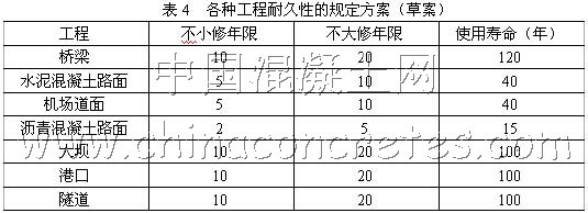 當前我國有些重大工程也提出保證百年壽命,但如何界定工程的壽命難度太大,故特提出不小修和不大修的年限(見表4),并與個人和公司的經濟收入相結合,有獎有罰,這樣才有可能真正重視工程的壽命。