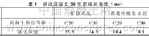保證保護(hù)層厚度,就相應(yīng)地延緩了混凝土碳化深度到達(dá)鋼筋表面的時(shí)間,推遲鋼筋銹蝕。如果保護(hù)層過小就等于加快了混凝土碳化到鋼筋表面的時(shí)間,使鋼筋早銹蝕,縮短建筑物使用壽命。已有的實(shí)驗(yàn)資料(見表 1)說明,礦碴水泥混凝土的碳化速度比普通硅酸鹽水泥的快,混凝土強(qiáng)度等級低比強(qiáng)度等級高的碳化快。采用普通硅酸鹽水泥或較高的混凝土強(qiáng)度等級,能有效延緩混凝土碳化。梁鋼筋的混凝土保護(hù)層要求是 25mm,如果施工失控減少了 10mm,就相當(dāng)于使鋼筋提前 10 年或 20 年銹蝕,相應(yīng)地縮短了工程使用壽命。如果鋼筋沒有混凝土保護(hù)層,鋼筋將會很快銹蝕,其后果不堪設(shè)想。有不少工程受力鋼筋外露生銹嚴(yán)重,加固處理費(fèi)工費(fèi)時(shí)增加成本,使混凝土結(jié)構(gòu)耐久性降低。