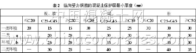 根據(jù)科學(xué)實(shí)驗(yàn)成果,新國家標(biāo)準(zhǔn) GB50010—2002《混凝土結(jié)構(gòu)設(shè)計(jì)規(guī)范》在強(qiáng)制性條文中明確規(guī)定:縱向受力的普通鋼筋及預(yù)應(yīng)力鋼筋,其混凝土保護(hù)層最小厚度(鋼筋外邊緣至混凝土表面距離)不應(yīng)小于鋼筋的公稱直徑,且應(yīng)符合表 2 的規(guī)定。