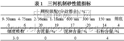 (3) 砂 河北三河低堿活性機制中砂,性能指標如表1 所示。