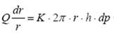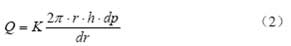 達(dá)西公式要求孔隙平行不發(fā)生橫向滲透,對(duì)于混凝土這種內(nèi)部孔結(jié)構(gòu)復(fù)雜且不斷變化的材料是做不到的,但目前國(guó)內(nèi)外學(xué)者認(rèn)為達(dá)西定律對(duì)于水泥混凝土還是適用的,對(duì)圓環(huán)形試件我們假設(shè)僅發(fā)生徑向滲透,對(duì)式(1)作微分得式(2)
