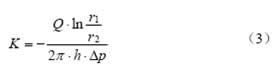 這樣就得到圓環(huán)形試件滲透系數(shù)計(jì)算公式(3),