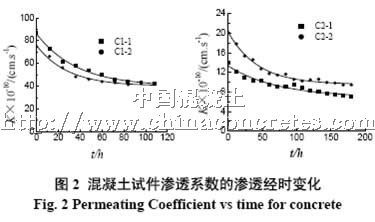 (2.) 混凝土的滲透系數(shù)隨滲透時(shí)間的減小近似呈負(fù)指數(shù)函數(shù)規(guī)律。