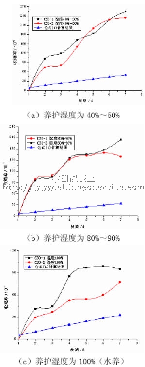 3).雙曲線函數(shù)式可以用作SCC收縮計(jì)算,但是需要進(jìn)一步研究,以重新確定參數(shù),尤其是重新確定相對(duì)濕度影響系數(shù)β1;