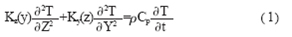 式中: Kz, Ky 分別為熱流方向和其垂直平面的導(dǎo)熱系數(shù); ρ為材料密度; Cp 為材料比熱。