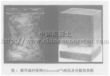 “ 聚丙烯纖維網(”FibermeshTM)是美國于20 世紀80 年代中期研制成功的一種新型加強材料。它適合于公路水泥混凝土路面、機場跑道、橋涵等多種混凝土工程的加強。這種纖維加強技術不同于以往的聚丙烯長絲和鋼纖維等,在外觀和分散過程上有較大不同,如圖1 所示。