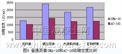 圖5 普通瀝青SMA-16和AC-16動穩定度比較