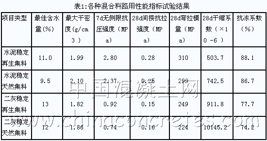 上述研究表明,再生集料完全能滿足作貧混凝土基層和水泥和二灰穩定基層使用。