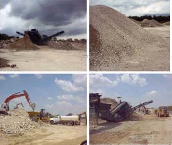 對于破損率大于20%、路基與基層具有明顯病害的水泥混凝土路段,必須將路面進行翻修重建。翻挖產生的舊混凝土可經破碎成再生集料。再生集料的生產如圖6。破碎后產生的集料可用作水泥混凝土路面的集料、或作路面基層或底基層的骨料。