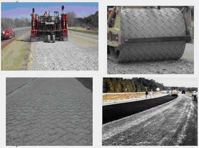 撒布一層粒徑為3-5mm石屑,用16噸鋼輪壓路機碾壓2遍;