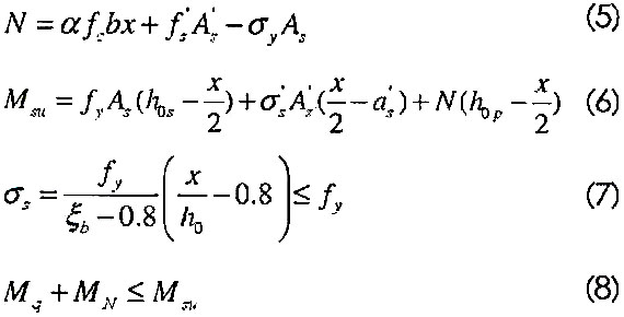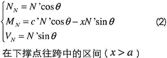 鋼筋混凝土構件采用預應力下撐式拉桿加固后,由原來的受彎構件變為偏壓構件。由平衡條件可以得到下撐式拉桿軸向拉力作用于被加固構件各截面中產生的附加內力