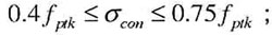 電熱法、橫向張拉、豎向張拉及楔頂法等預應力施加方法,其變形控制量△,應以拉桿或撐桿真正開始受力時的值作為張拉的起始點(零點)。多點橫向張拉及豎向張拉,各點張拉螺栓應同步進行擰緊。拉桿、撐桿張拉控制應力值σcon,不宜超過規定數值(碳素鋼絲、刻痕鋼絲、鋼鉸線: