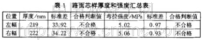 采用爭10取芯機對該段水泥路面進行隨機鉆孔取芯試驗,共采樣78個,其中左幅采樣39個,右幅采樣39個。對所取芯樣·試件測出其高度,路面實測結構見表1。