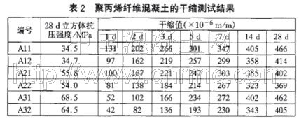 1)在混凝土中摻人聚丙烯纖維,混凝土的干縮會減少,這可以減少混凝土因干縮而產生的拉應力,可以抑制混凝土的干縮裂縫,減少混凝土干縮裂縫的寬度和數量。