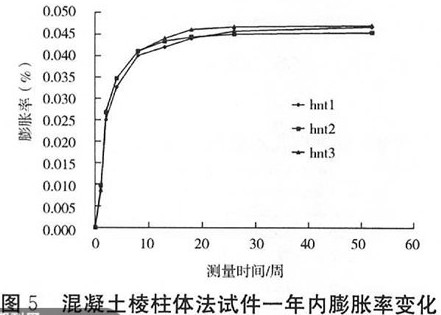 混凝土棱柱體法:按文獻[4]中5.6方法進行。共制作3組9個試件,在38 ℃下養護, 分別測量試件1周、2周、4周、8周、13周、18周及一年的膨脹率,若膨脹率大于0.04%時則判為具有活性。