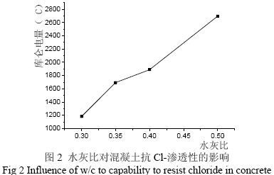 1.降低水灰比能提高混凝土抗Cl-滲透性能,但單純通過降低水灰比并不能配制出抗Cl-滲透能力好的高性能混凝土。