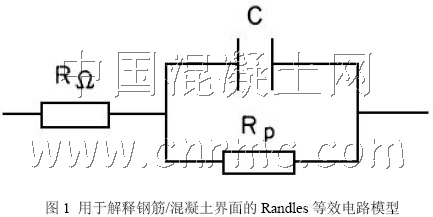 恒流脈沖法首先是通過(guò)一個(gè)外加輔助電極對(duì)一個(gè)鋼筋/混凝土體系施加一個(gè)小且短暫的恒流擾動(dòng)信號(hào),隨后切斷電源,記錄并分析鋼筋電位的衰減變化曲線。一般來(lái)說(shuō),鋼筋混凝土界面系統(tǒng)可以采用一個(gè)簡(jiǎn)單的Randles 電路描述,見圖1。因此,電位隨電流階躍ΔI 的關(guān)系可由式(1)給出[22]: