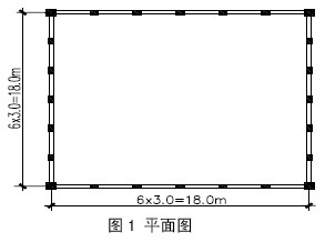 框筒結構的平面圖及剖面圖分別見圖1 和圖2。層高3m 共12 層,柱距均為3m,角柱截面為700×700mm,其它柱截面為400×600mm,框筒梁截面均為300×800mm,樓板為密肋樓蓋?;炷恋燃墳镃30,鋼筋選用HPB235 及HRB400 熱軋鋼筋。采用廣廈建筑結構CAD9.0 按7 度設防計算其配筋。