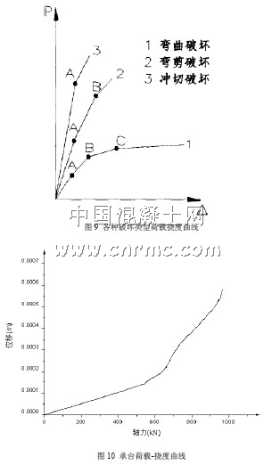 一般的混凝土梁、板考慮彎曲或剪切的破壞形態研究中,常見的荷載-度曲線如圖9 所示。本文中承臺的荷載-撓度曲線如圖10 所示。