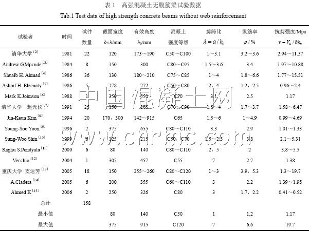 關(guān)鍵詞:高強(qiáng)混凝土;無腹筋梁;抗剪強(qiáng)度