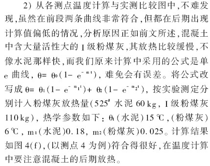 的正確取值。除需獲得工地實(shí)際氣溫變化情況和施工進(jìn)度,還要正確測試和模擬大壩混凝土的絕熱溫升曲線。文中為了模擬碾壓混凝土中粉煤灰后期放熱,采用雙e 曲線模型,取得較好效果。在大壩設(shè)計(jì) 階段,能獲得準(zhǔn)確的仿真溫度場,對研究壩體應(yīng)力分布,調(diào)整施工計(jì)劃及采取溫控措施要求,都是很有實(shí)