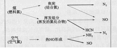 圖6 水泥回轉(zhuǎn)窯的NO形成機(jī)理