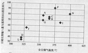 圖3為以生料粉帶人的硫化物為基準(zhǔn),S02吸收率與出預(yù)熱器氣體溫度的關(guān)系,溫度越高對(duì)S02的吸收越有利。