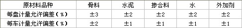 預拌混凝土應逐盤配料計量。其計量允許偏差應符合下表規定。