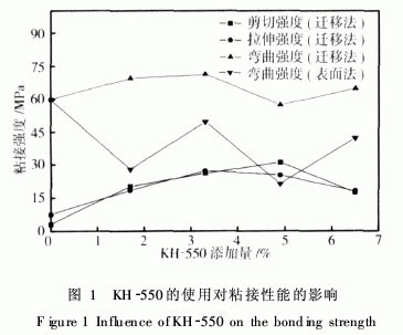 2.1KH-550對基本配方粘接強度的影響(見圖1)