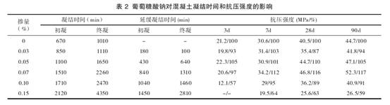 (3)葡萄糖酸鈉如摻量過大,由于緩凝性太強,如果混凝土3d內不終凝便會導致后期強度大幅度降低。